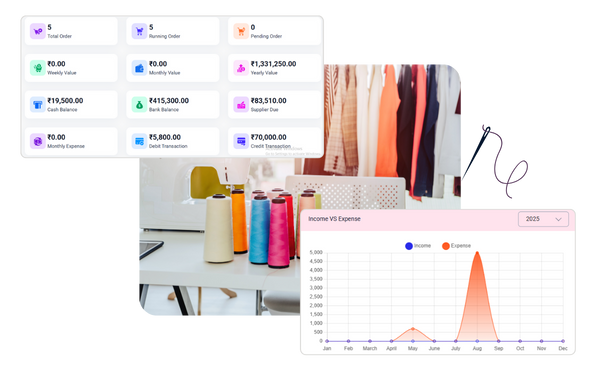 Monitor your entire garment operation from a single interface. View real-time updates on orders, stock, finance, and HR, all in one place.
